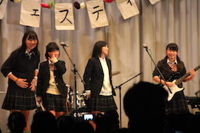 演劇部・吹奏楽部の発表、今年から美術部のパフォーマンスも加わりました。恒例の生徒のバンド、ダンス、漫才など大いに盛り上がりました。模擬店部門のコンクールも行われました。