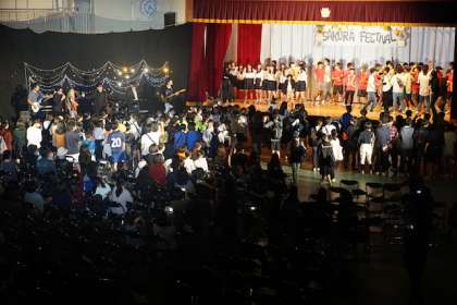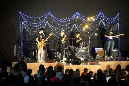 ステージ部門では、演劇部や吹奏楽部の既存の部活動の発表以外に、ダンス、漫才、バンドなど誰でも自由にエントリーができます。ステージの音響やバンドのサポートなど、地域や保護者からプロの方がお手伝いいただき、それこそ、本当のライブのような環境で実演されます。
