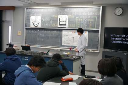 心臓の模型を3Dプリンターで制作して、動物の種類による心臓のちがい、また、進化がどのように進んできたのかを学習しました。