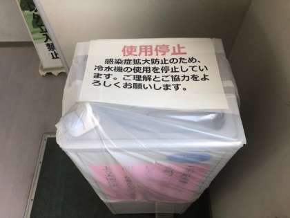 校内での感染症拡大防止のために冷水器の使用を停止いたします。水筒をご用意ください。また、分散登校期間中は各教室のごみ箱を撤去させていただきます。各自でビーニール袋などのゴミ袋をご用意ください。トイレ使用後はふたを閉めるようお願いします。マスクの着用および健康観察表・ハンカチ(タオル)を必ずお持ちください。