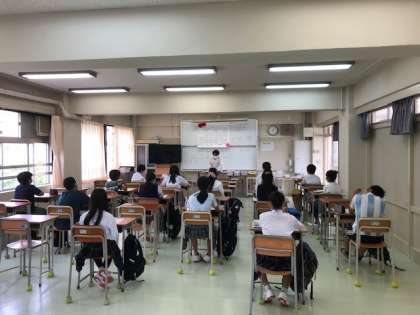 午後からは出席番号が偶数の生徒の登校となりました。ここでは各クラスの学活の様子を紹介いたします。写真左からA組 B組 C組の様子です。