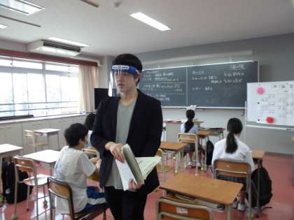 教員のフェイスシールドが到着しました。