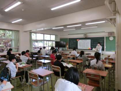 午後は気温も上がりかなりの蒸し暑さです。窓を全開にして、エアコンをつけての授業です。一生懸命取り組む姿が見られました。課題が終わった生徒は、本日は図書室の利用もできますが、感染症拡大防止のためしばらくのあいだは貸出のみとさせていただいております。