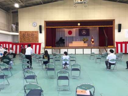 日曜日はいよいよ入学式ですね。今から楽しみです。会場設営が終わった後、先生たちが式練習をしている様子です。