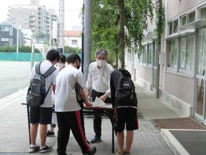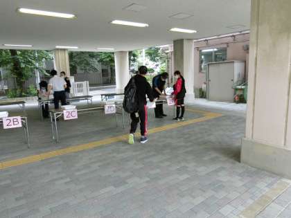 本日は2,3年生が分散で登校いたしました。2年生は身体計測があるのでジャージを着用しての登校です。