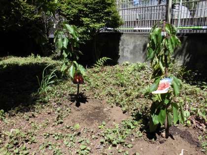 新1年生の入学記念として、植物園にさくらんぼとアメリカンチェリーの苗木が植えられました。