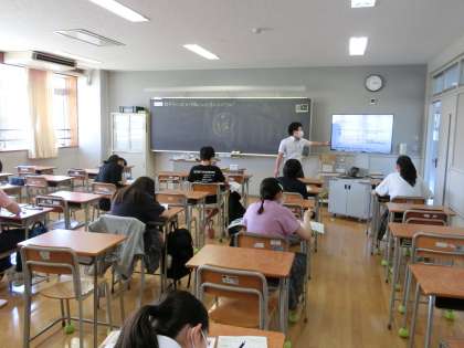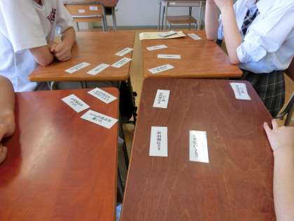 日差しが強くなる中午後の部が開始されました。2年生の英語ではカードを使ったグループ学習が行われました。社会の歴史の授業では画像を使っての授業になりました。