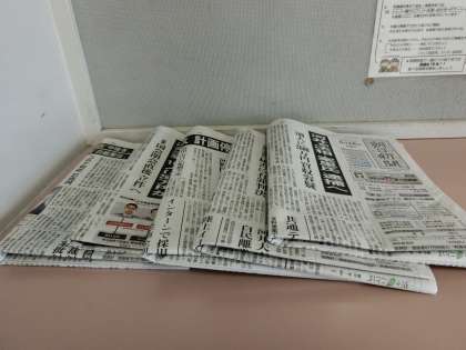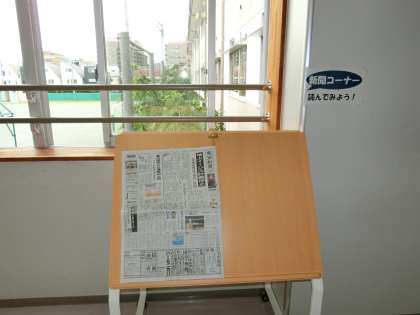 現在3年生の各教室には、毎朝朝刊が配られています。また。図書室前には新聞台が設置され朝刊が読めるようになっています。この機会に新聞を読んでみましょう。