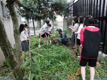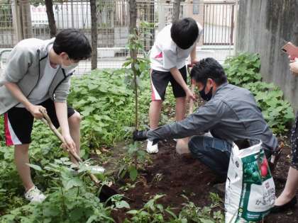 生徒会の生徒と植樹を行いました。
