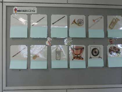 第二音楽室の前には楽器クイズが掲示されています。あなたはいくつできるでしょうか?ぜひチャレンジしてみてください。