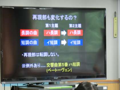 今日は「運命」。正確には今日の2年生の音楽の授業は、ベートーベンの交響曲第5番ハ短調「運命」でした。授業の前半は先生の講義をうけてからの鑑賞のなりました。どの生徒もワークシートに記入しながら真剣に鑑賞しておりました。