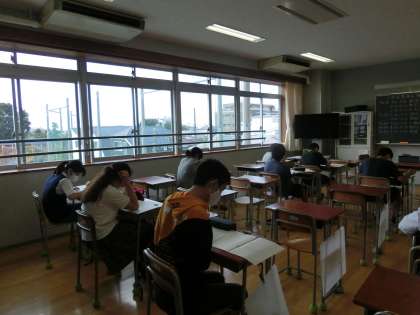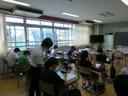 後半の補習授業も2日目。左の写真は3年生の英語、右の写真は2年生の数学の様子です。暑い中ですがみんな真剣に取り組んでいました。