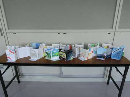 北校舎2階の廊下には2年生の美術で制作したブックカバーが展示されています。ユニークな作品が数多くあります。ぜひご覧ください。