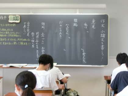 3年生の今日の補習授業は小論文の書き方です。テーマに沿った表現方法、自分の意見のまとめ方、文法上の制約などきめ細かな指導受けていました。