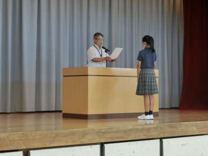陸上部の1年生女子が東京都中学生夏季陸上競技会に出場し、走幅跳で7位に入賞しました。本来なら関東大会まで狙える結果ですが、今年はコロナウイルスの関係で大会そのものが中止になってしまいました。来年は上位の大会に出場できるといいですね。
