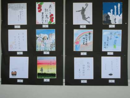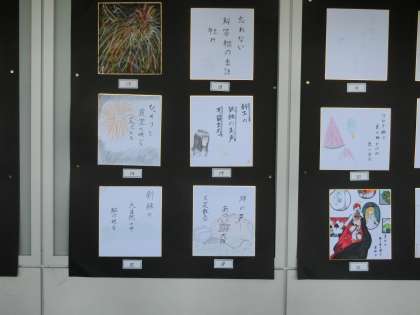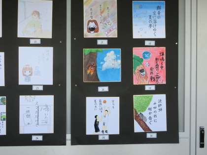 3年の俳画は北校舎3階の廊下に展示しています。