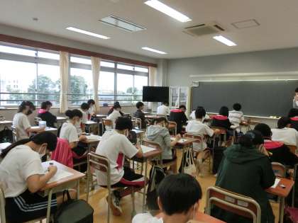 今週は実技教科の積み重ねテストが行われます。月ー音楽 火ー美術 水ー家庭科 木ー技術 金ー保健体育で実施する予定です。今日は音楽のテストを行いました。