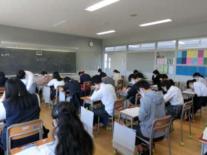 先週の土曜日から始まった3年生の積み重ね総合テストウィーク。今日は理科のテストを実施しました。明日は積み重ね総合テストウィークの最終日で、英語のテストを実施いたします。なお、明日は1,2年生の社会科の積み重ねテストも行います。