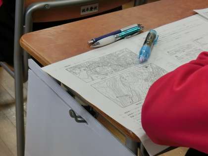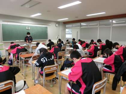 今日は1,2年生の社会の積み重ねテストを実施いたしました。2年生の地理では地形図の読解が出題され、どの生徒も目を凝らして問題に取り組んでいました。