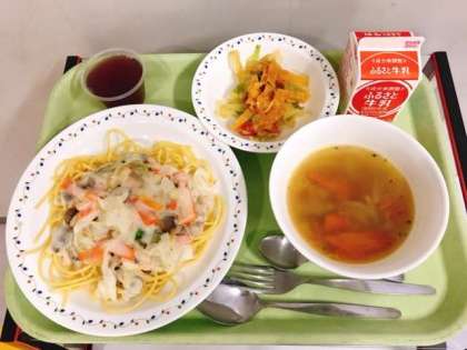 家庭科の授業で、1年生の生徒が献立を作成しました。各クラス1名の献立を選び、10月11月の給食で提供します。今日はその1回目で、1年E組の生徒が作成した献立です。
