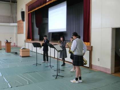 本日は来年度本校に入学を予定している新入生保護者説明会を行いました。説明会の始まる前に吹奏楽部の生徒による演奏を聴きいただきました。