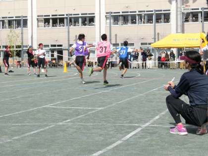 クラスの作戦とバトンの巧拙が勝敗を分ける全員リレー。2年生の部です。