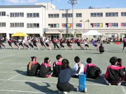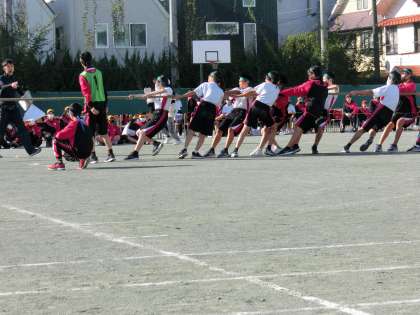 今年の1,2年生の学年種目は綱引きです。学年1の力持ちクラスは・・?