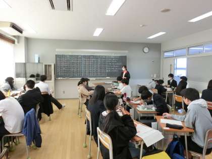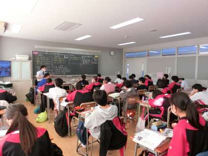 今日は世田谷区の教育の取り組み「世田谷11+」の一環として、さくらの学舎に所属する桜丘幼稚園、桜丘小学校 笹原小学校の先生方が桜丘中学校に集まり研究協議会を行いました。5時間目は桜丘中学校の先生方の授業を参観しました。今日の授業のテーマは「探求的な学習」です。