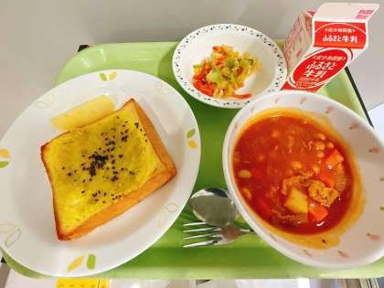 さつまいも・にんじん(千葉)、きゅうり(群馬)、きゃべつ(神奈川)、赤ピーマン(山形)、たまねぎ・じゃがいも(北海道)、パセリ(長野)、豚肉(群馬)、りんご(青森)