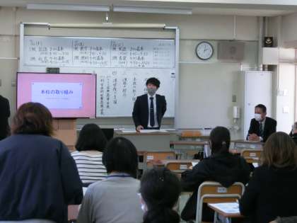 不登校生徒の保護者に限らず、卒業後の進路に不安を感じている保護者の方も多いと思います。今日はそうした保護者の方を対象に、さくら国際高等学校、科学技術学園高等学校の先生を講師にお招きし卒業後の進路についての保護者会を開きました。当日は本校の特別支援コーディネーター、キャリア支援部主任より本校と取り組み卒業後の進路について説明させていただいた後、それぞれの高等学校の特色についてお話しをいただきました。最後に本校校長が、通信制高校 サポート校 チャレンジスクール 特別支援学校高等部の特色ついて具体的なお話をいたしました。全体会のあとはグループに分かれ懇談会をおこないました。