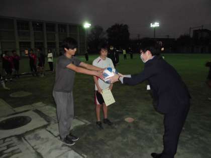 サッカー部にボールの贈呈がありました。