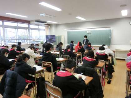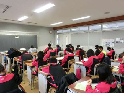 先々週行われた積み重ね総合テストの結果を見て再度チャレンジしたい生徒は、このおかわりウィークで再受験することができます。今日は理科を行いました。クラスにもよりますが、取材した2年生のクラスでは8〜9割くらいの生徒が受験していました。明日はおかわりウィークの最終日で、英語のテストを実施いたします。