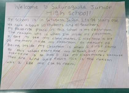 1年生が取り組んだ、学校紹介に関するライティングです。
