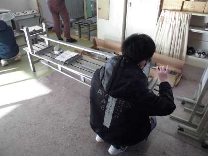 組み立ては、主事さん中心に生徒も手伝ってくれました。