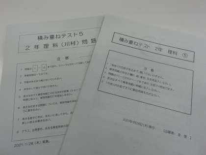 今日は理科の積み重ねテスト(1,2年生)を実施いたしました。次回の積み重ねテストは2月2日(火)に英語を実施いたします。対象は1,2年生です。