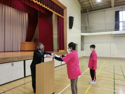 本日の昼休みに表彰を行いました。この様子は来週各教室にロイロノートを使って配信されます。