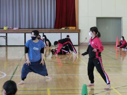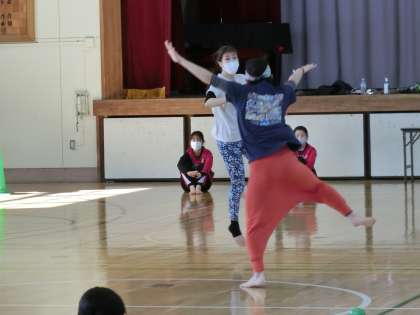 2年生も本日ゲストティーチャーを招いてダンスの授業を行いました。今日のテーマは「アイコンタクトダンス」です。ゲストティーチャーのパフォーマンスのあと、2人1組になって、アイコンタクトを通して互いの意思を確認しながらダンスを演じました。