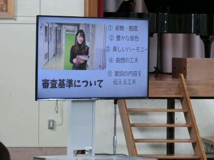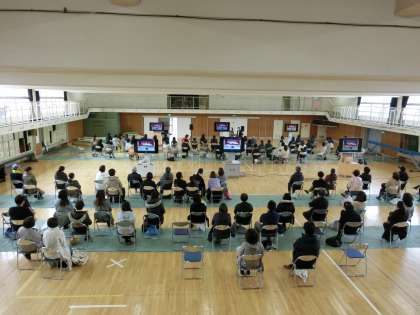 本日は合唱コンクールを開催いたしました。感染症予防のため会場へは当該学年のみの入場とさせていただきました。開会式もリモートで行いました。保護者の皆さまには格技室でロイロノートを使用して音声、画像を配信させていただきました。