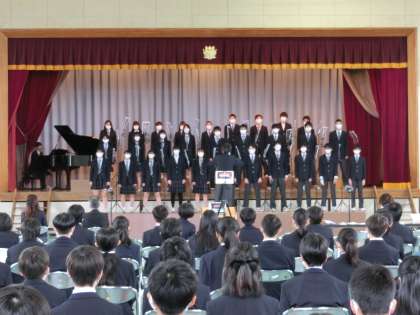 昨年は中止となった合唱コンクール。2年生にとっても中学校では初舞台です。そのトップは2年A組「友〜旅だちの時〜」です。