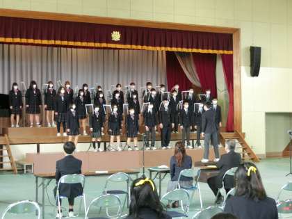 午後の部は3年生の合唱から始まります。最初はD組で「青い鳥」。毎年上位に顔を出すこの曲をトップバッターの緊張の中歌います。