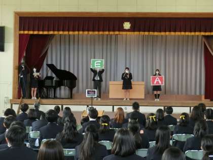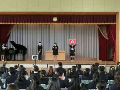 閉会式は3年生は会場で、1,2年生は教室でロイロノートで配信された画像を通しての参加になりました。