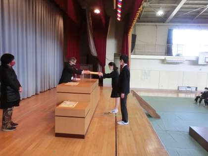 東京都産業教育振興会の表彰は「人格を磨き、特に技術・家庭科の学習に熱心で、他の模範となり、卒業後も今後の産業振興に期待ができる」という選考基準で選ばれました。3年C組Fさん B組Kさんが表彰されました。