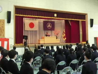 本日は在校生は代表生徒(生徒会役員)のみ臨席になりました。在校生の代表による送ることばです。