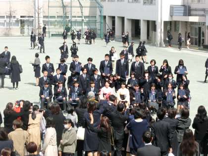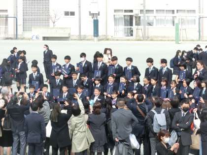 コロナ対応で、保護者の皆様には各家庭一人のみの会場への入場に協力いただきまして感謝申し上げます。また、今回は在校生は代表者のみの臨席とさせていただきました。そうした中でも卒業生は堂々と胸を張って卒業いたしました。