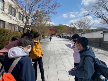 伏見稲荷大社の鮮やかさに驚かされた生徒たち。