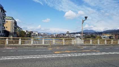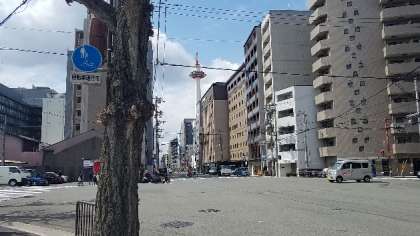 京都タワーから三十三間堂に向かっています。鴨川の桜がキレイです。人も車も少なくて快適です。