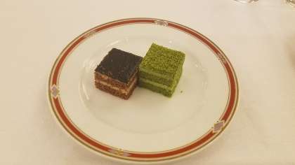 楽しく夕食が終わりました。デザートのケーキ、おいしかったです。これから希望者は東寺の夜間拝観に出かけます!夜桜も特別に見られます。今のところ具合のよくない生徒はゼロです。