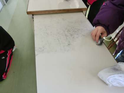 今日の午後は、1年間使用した教室や特別教室の大掃除を行いました。3年生の教室は1年生が掃除を行いました。