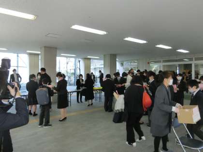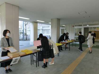 受付の様子です。受付のあと生徒は教室へ保護者は体育館へ向かいました。