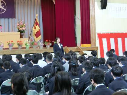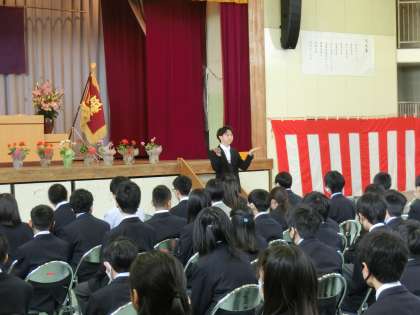 退場の様子。担任の先生の誘導で退場いたしました。A組 B組。